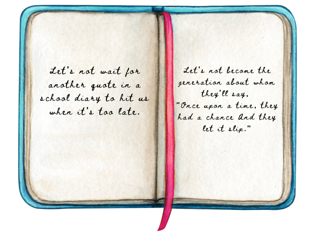 When I was in school, there was this diary. You know the kind with quotes printed at the bottom of each page, and little sketches in between. One of them stayed.